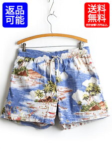 ■ POLO ポロ ラルフローレン アロハシャツ 柄 スイム ショートパンツ ( メンズ 男性 L ) スイムショーツ ショーツ 古着 海パン 水着 総柄| 【USA古着】中古 RALPH LAUREN ハワイアン ハワイアンシャツ アロハ ハーフパンツ 短パン 半ズボン インナー付 サーフパンツ ブルー