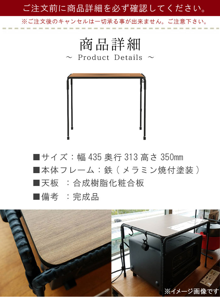 トースターラックのみ 幅43.5cm 高さ35cm ブラック×ブラウン アイアン 鉄筋フレーム ラック 収納 キッチンラック キッチン収納 デザイナーズ シンプル インダストリアル 北欧 おしゃれ お洒落 オシャレ 【QSM-140】
