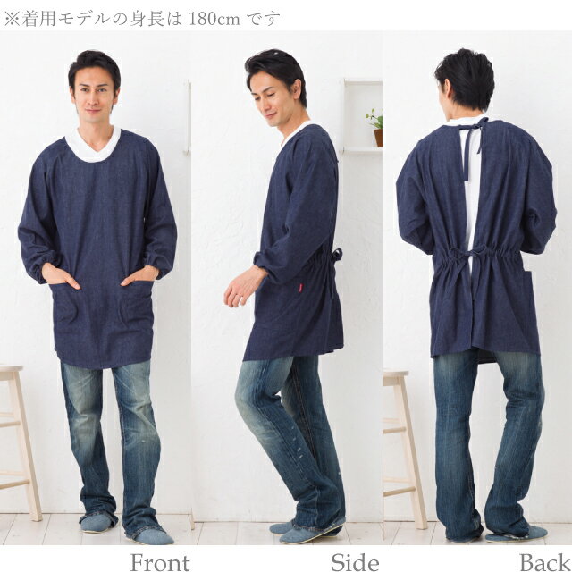 シンプルなデザインがおしゃれなソフトデニム生地でできた男性用割烹着。