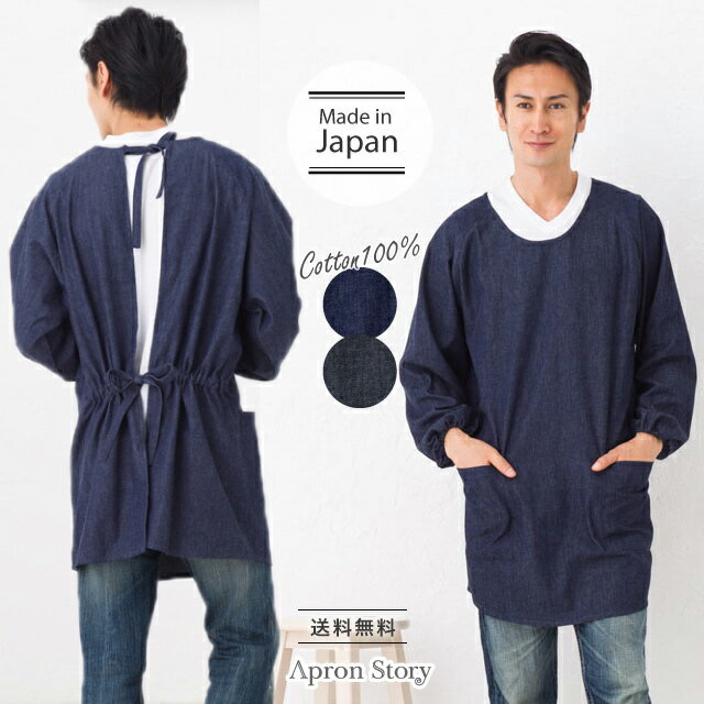 【送料無料】【日本製】ソフトデニムメンズ割烹着 男性用 大きいサイズ 作業着 作務衣 割烹着 かっぽう着 無地 おしゃれ お揃い ペアルック プレゼント ギフト【N】【M】
