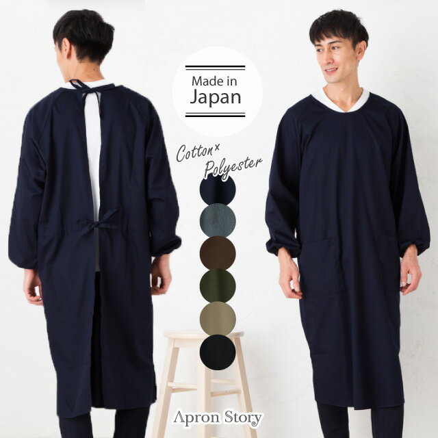 【メール便1枚のみ対応可能】ロング丈シンプルラグランメンズ割烹着【日本製】男性用 エプロンかっぽう着 作業着 作務衣 無地 おしゃれ シンプル プレゼント ギフト【N】【Y】